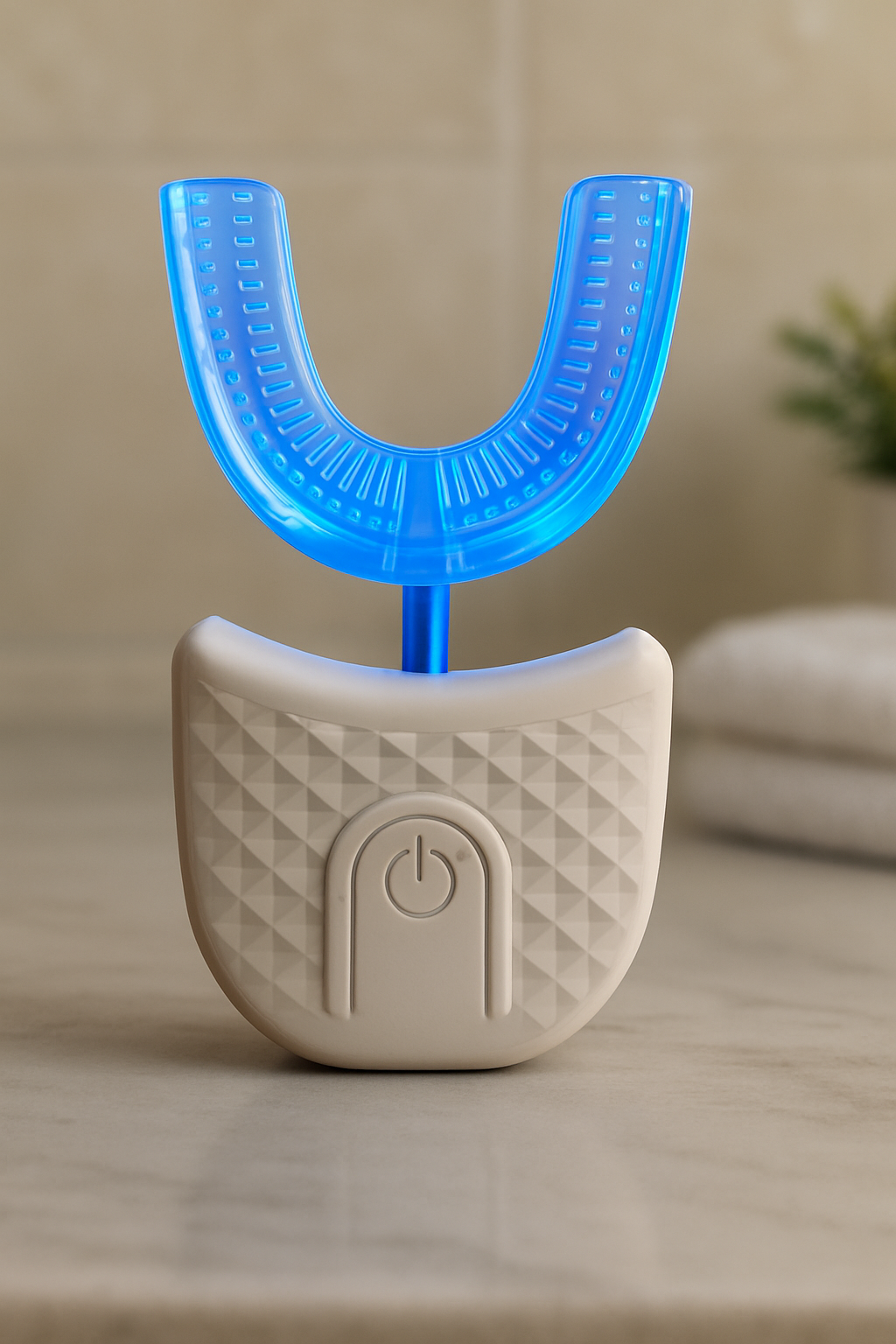 The unique U-shaped design brushes all your teeth at once — giving you a full, even clean that reaches every spot traditional brushes miss.