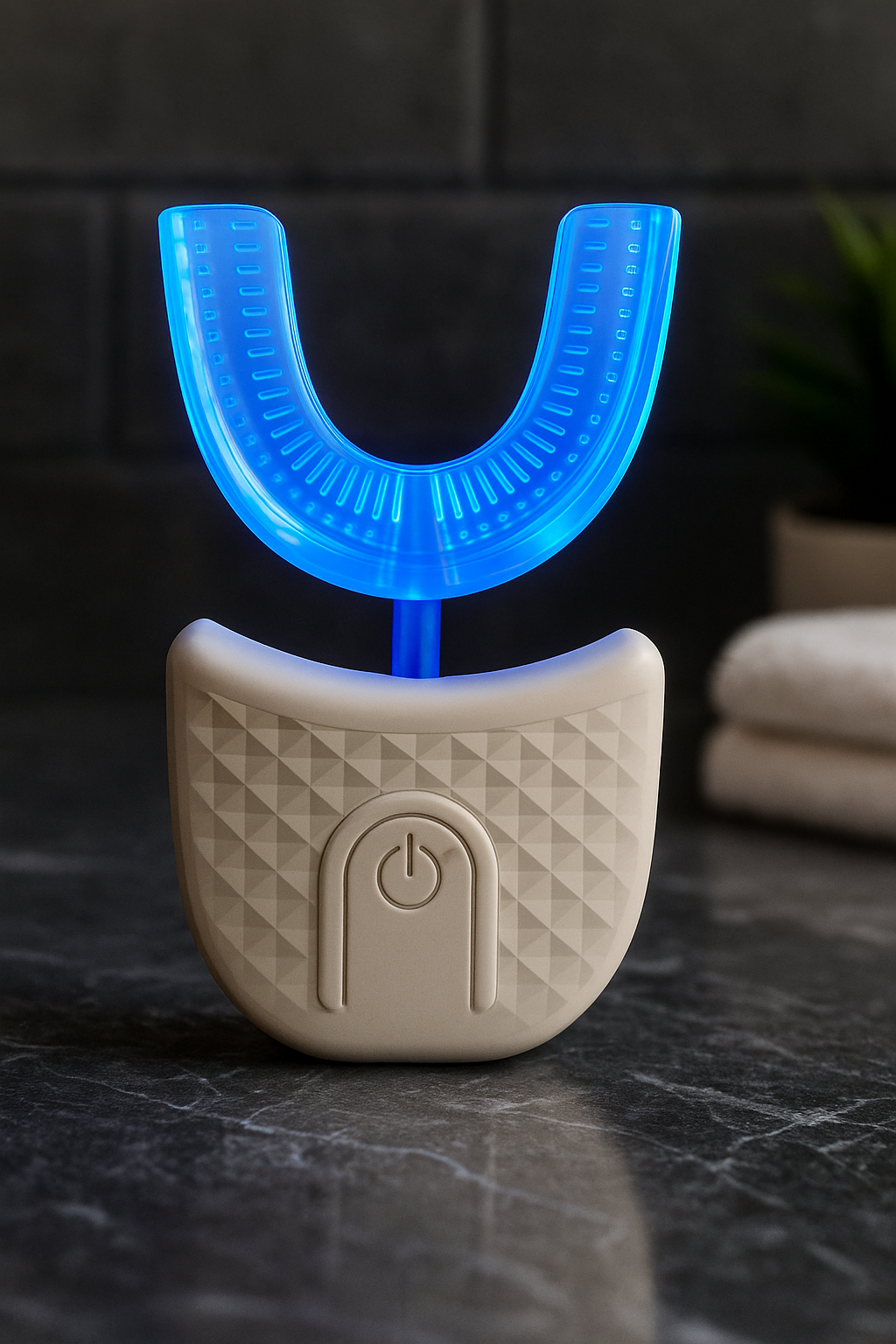 The unique U-shaped design brushes all your teeth at once — giving you a full, even clean that reaches every spot traditional brushes miss.